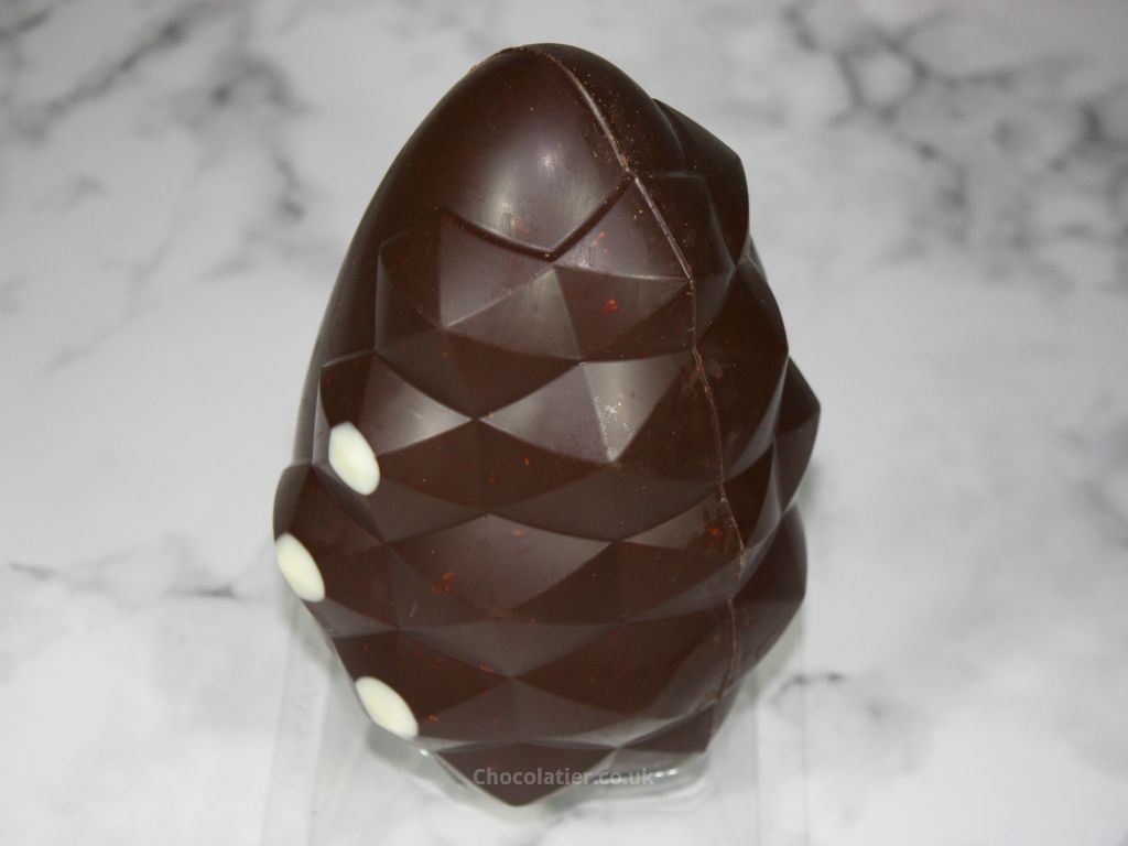 A beautiful looking egg made using a bitter yet creamy 65% Supermilk chocolate. The granola and berries add texture but distract due to their large sizes and generous inclusion.
