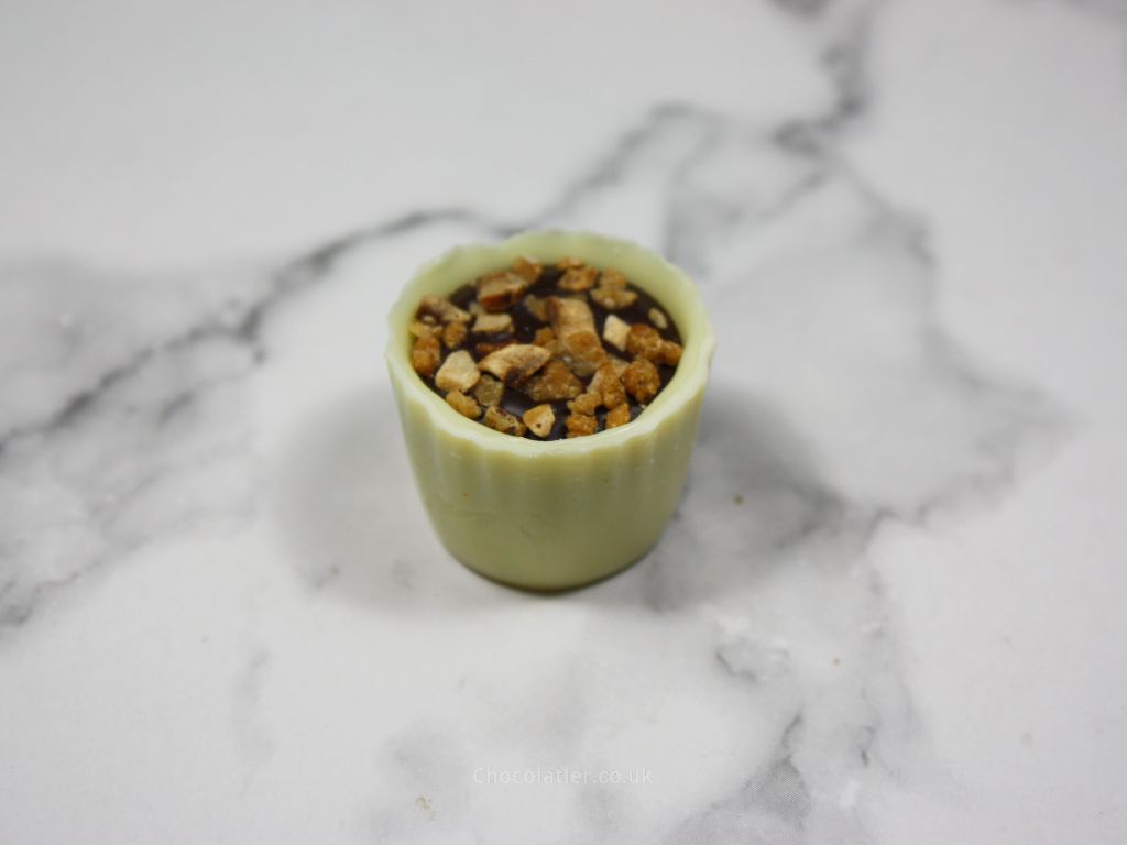 Chocolate shell thicknesses varied from one piece to another, with the Raspberry Infusion and Crème Brûlée bites showcasing the thickest shells. I liked the cup shape and decoration of the Hazelnut Torte chocolate.