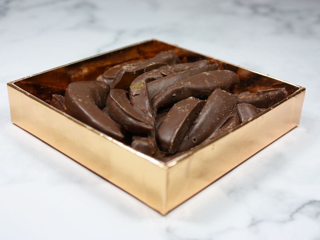 Highly addictive treats, that cleverly fuse rich chocolates with flavourful candied grapefruit and ginger. Flavours are meticulously balanced, resulting in a perfect harmony between shell and filling. The grapefruit packs a bitter flavour punch, while the ginger batons deliver a satisfyingly good spicy warmth.