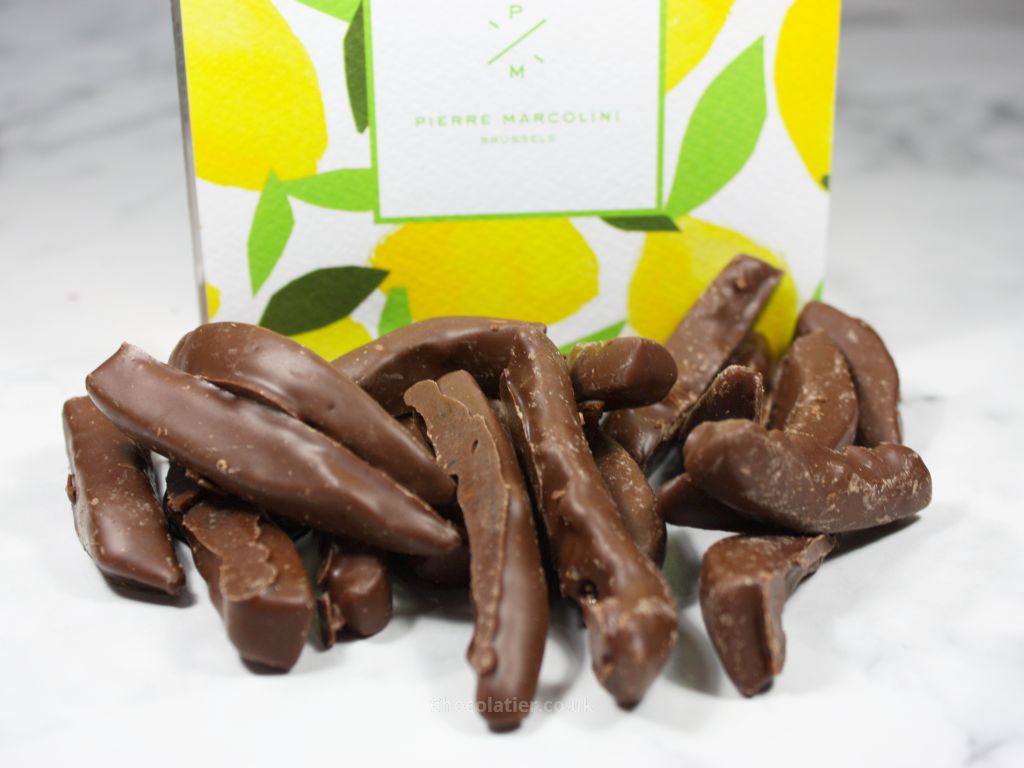 You can buy Citronnettes (candied lemon strips coated with a house dark chocolate) and Gingembrettes (candied ginger strips with the house dark chocolate) online direct from Pierre Marcolini's website here (£9.90; 110g). The Pamplemoussettes (candied grapefruit strips with a house milk chocolate) are only available to purchase in-store (£9.90; 110g), as is the sleeved gift pack.