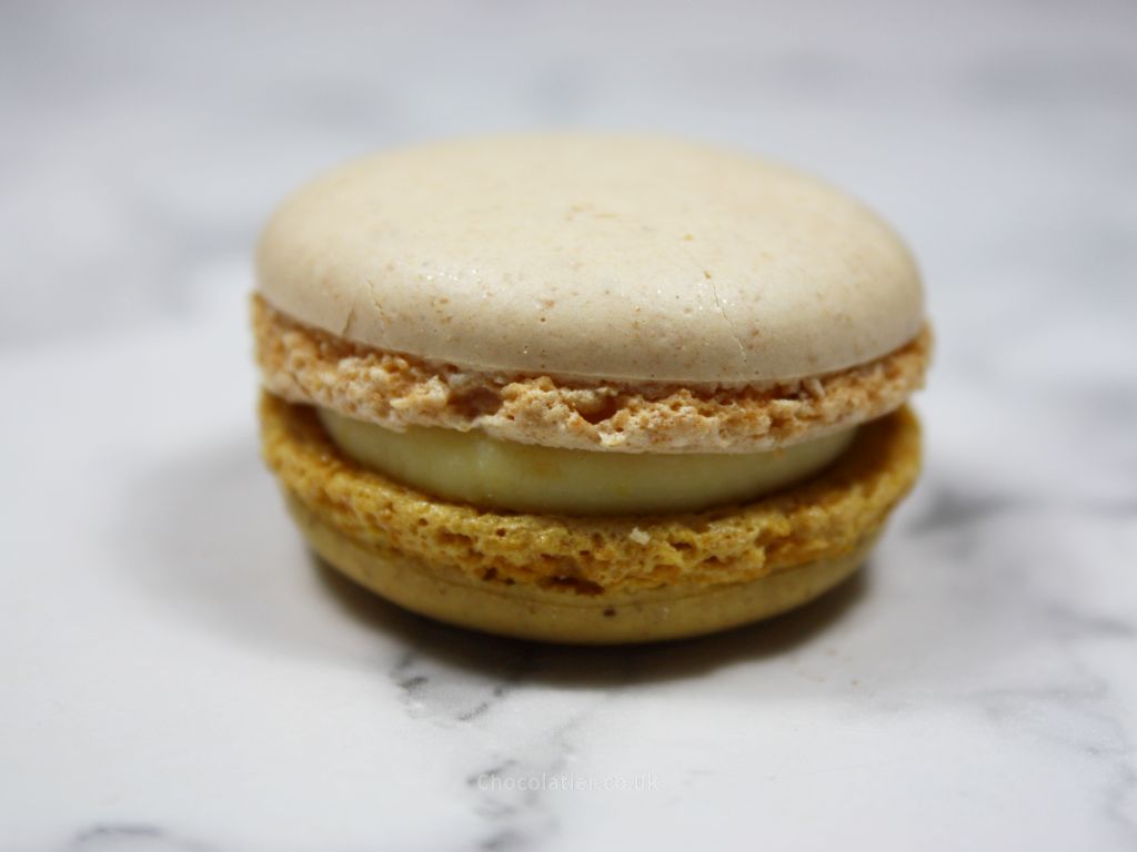 Starting with the Lemon and Verbena macaron, the flavours are clearly defined. A green vegetal flavour from the verbena sits at the front, with a subtle lemon flavour beneath. The lemon isn't as forceful as I anticipated, but helps to balance out the vegetal quality of the verbena. The sweet creaminess of this filling makes this otherwise light bite feel indulgent.