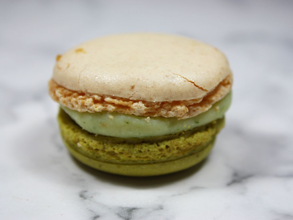 My favourite of the two is the Orange and Fennel macaron. The orange sits in the background and allows the liquorice aniseed flavour of the fennel to come through clearly. It isn't overpowering though, so it doesn't thrust its way across your palate. Instead, it perfectly pairs with the delicate texture of the macaron. It's clear enough to be noticed yet subtle enough to allow the orange flavours through underneath. Again, the filling adds a satisfying hint of sweetness and creaminess, and I also detect faint notes of coconut in there as the orange and fennel flavours riff off one another.