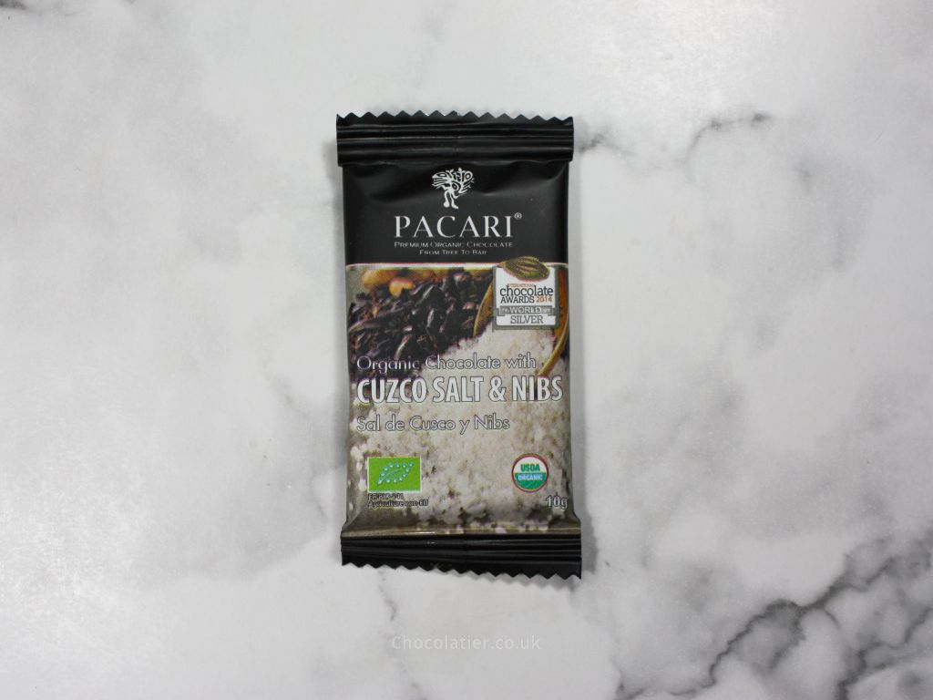 - What they say: Dark chocolate paired with Cuzco pink salt from the Maras salt terraces in Peru.