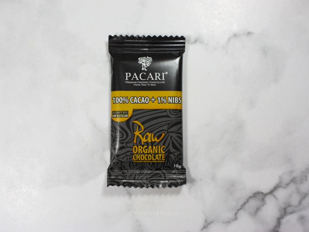 Pacari Raw 100% Cacao + 1% Nibs ingredients: