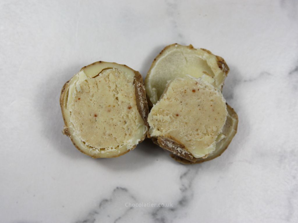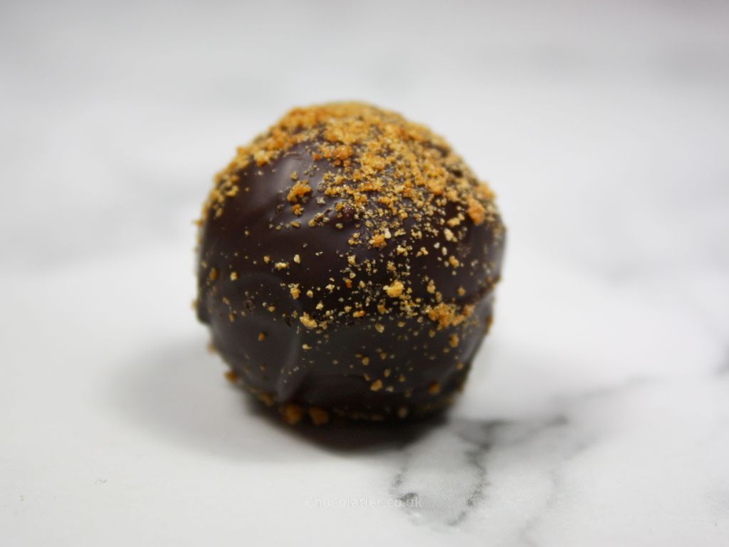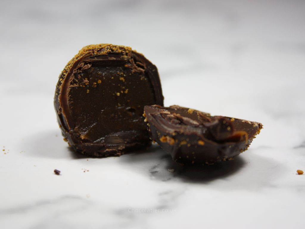 Creamy, vanilla and caramel notes emanated from this white chocolate number, The ganache inside was quite dry, with a subtle boozy flavour that wasn't overpowering. As the tipple kept at bay, it allowed the creamy vanilla notes and gentle spices to come through, serving up a gentle warming background instead.