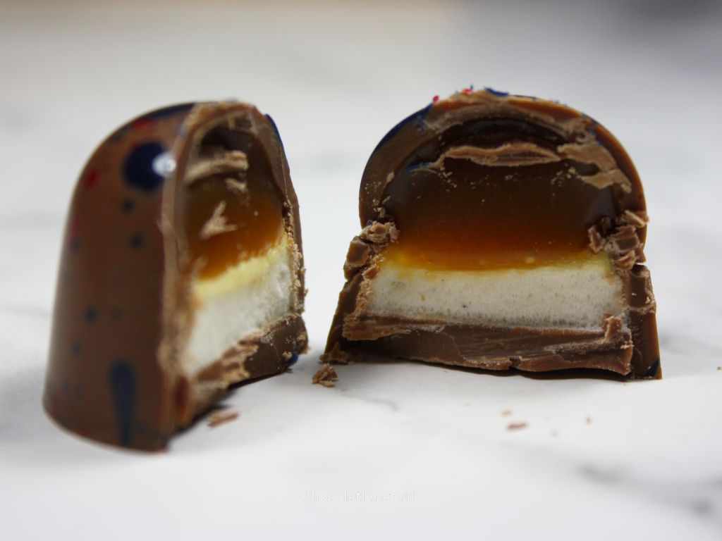 Now, we're into the realms of the best of both worlds. I preferred the milk chocolate versions of both the Marshmallow bonbon and the Salted Caramel bonbon, and it's the milk chocolate Caramallow bonbon (red and blue spots) that hits the sweet spot here too.