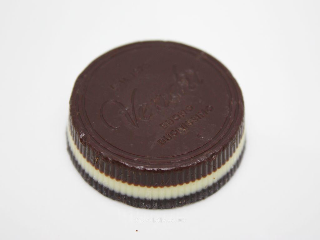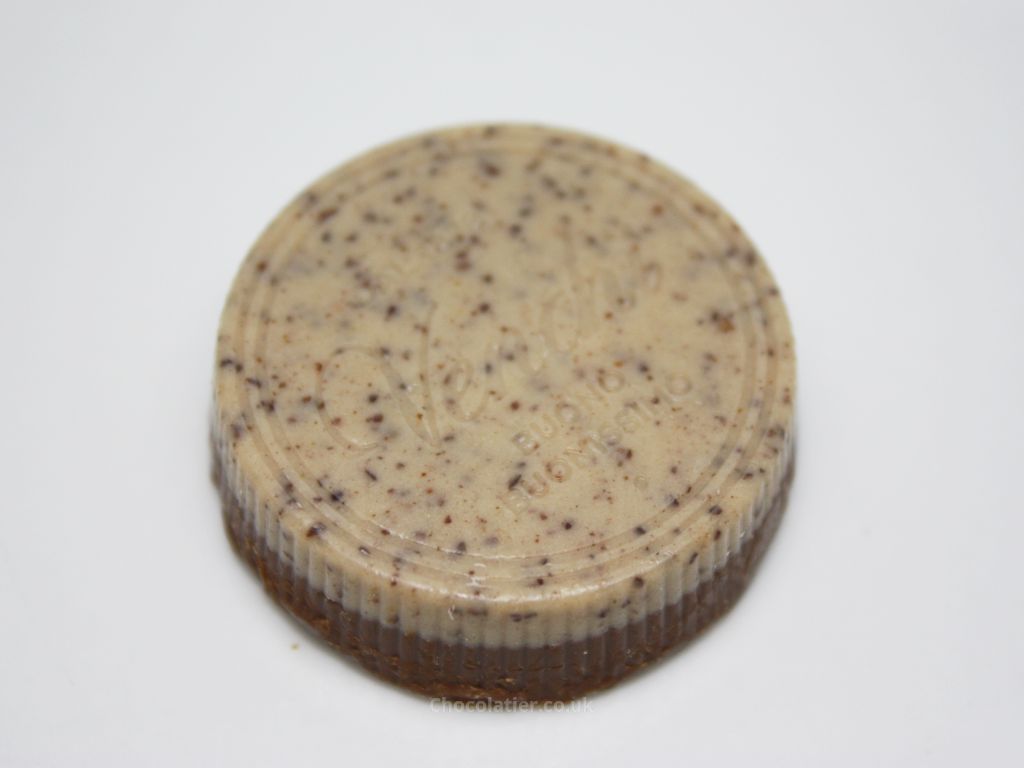 This speckled two-tone chocolate featured a layer of coffee-flecked chocolate atop a milk chocolate base, with a hidden disc of dark chocolate tucked away in the centre.