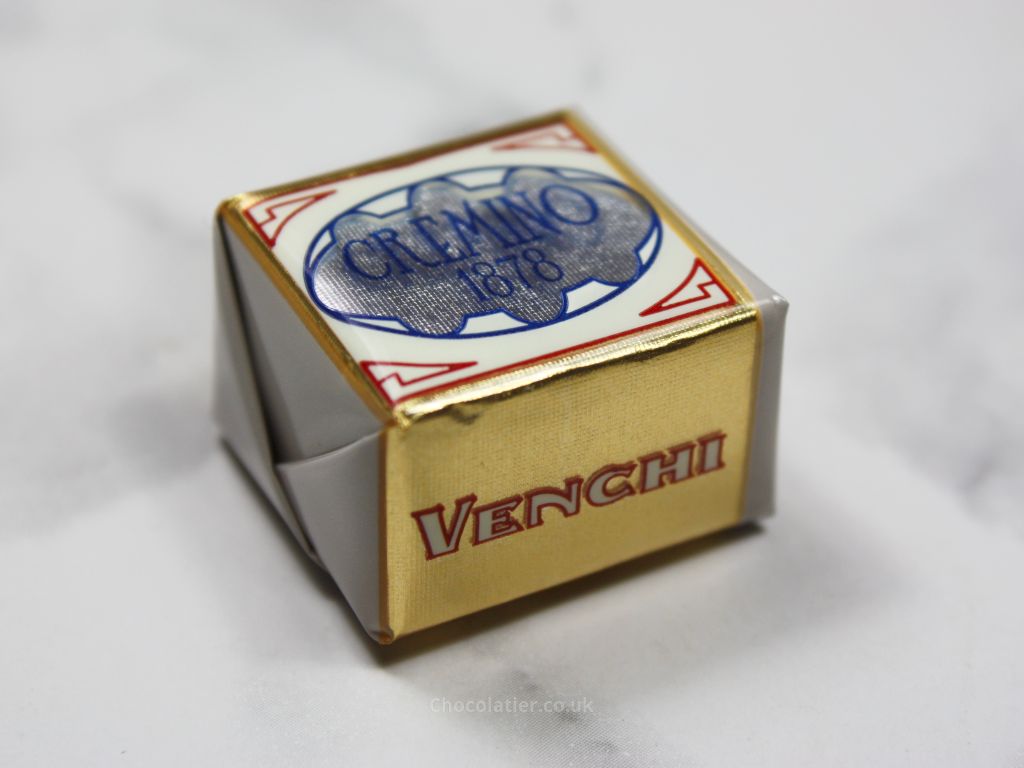 I couldn't find the ingredients list or the nutritional information for this chocolate on the Venchi website, although the circular form now looks to now be replaced with a cube version of the same thing.