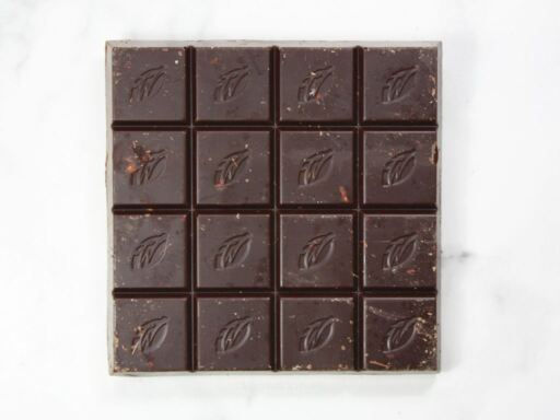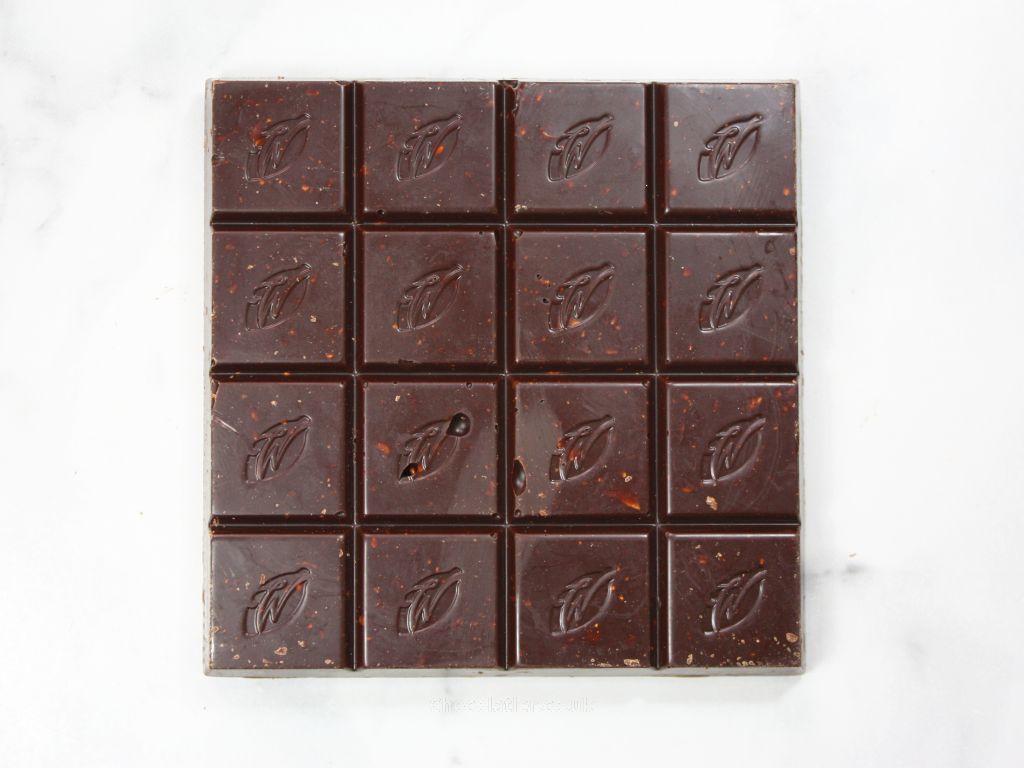This perky little bar emits a lively citrus aroma, although on tasting, the flavour is far more subtle. Orange notes come through, as does a gentle tartness, that balances against the creamy chocolate base.