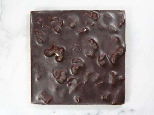 The chocolate itself tastes quite dry compared to the others, with a coarse texture, although the soft, chewy pieces of date help to distract from this.